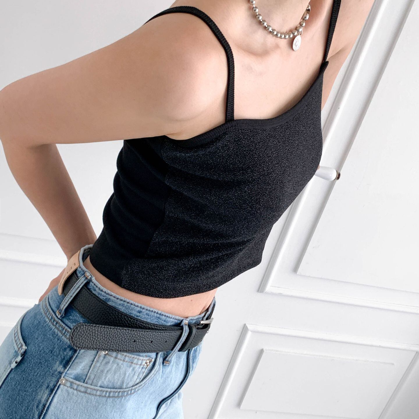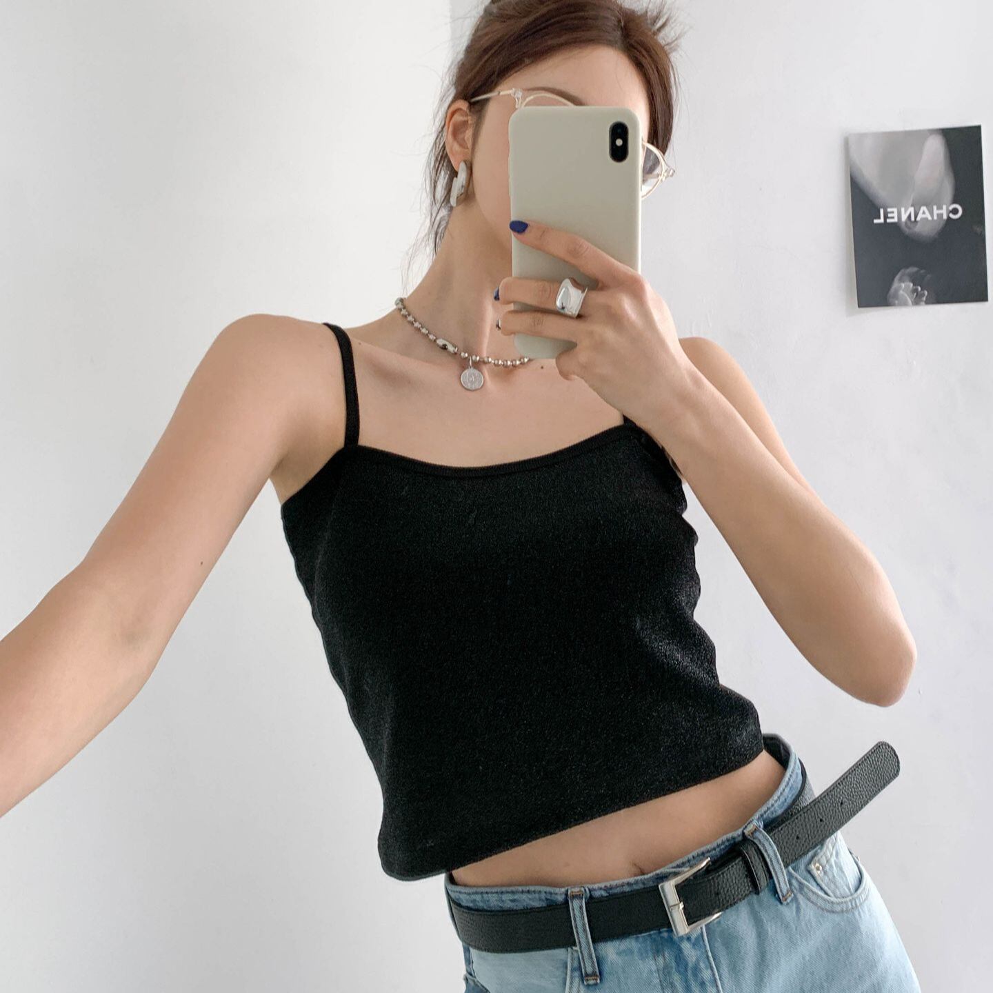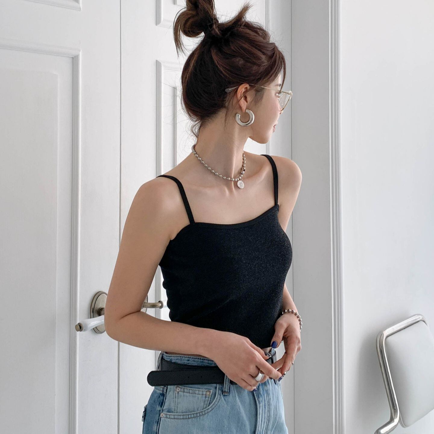 シャロンナシ キャミ キャミソール 黒 ブラック 韓国 重ね着 シンプル