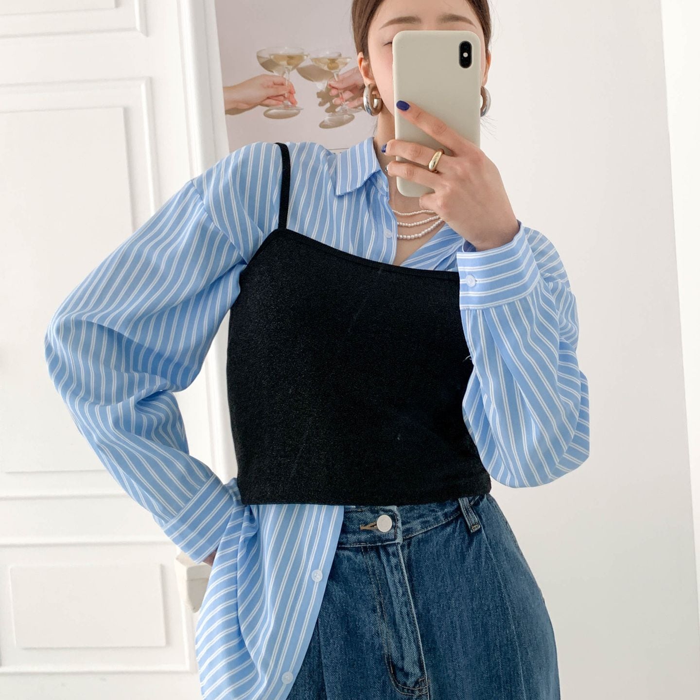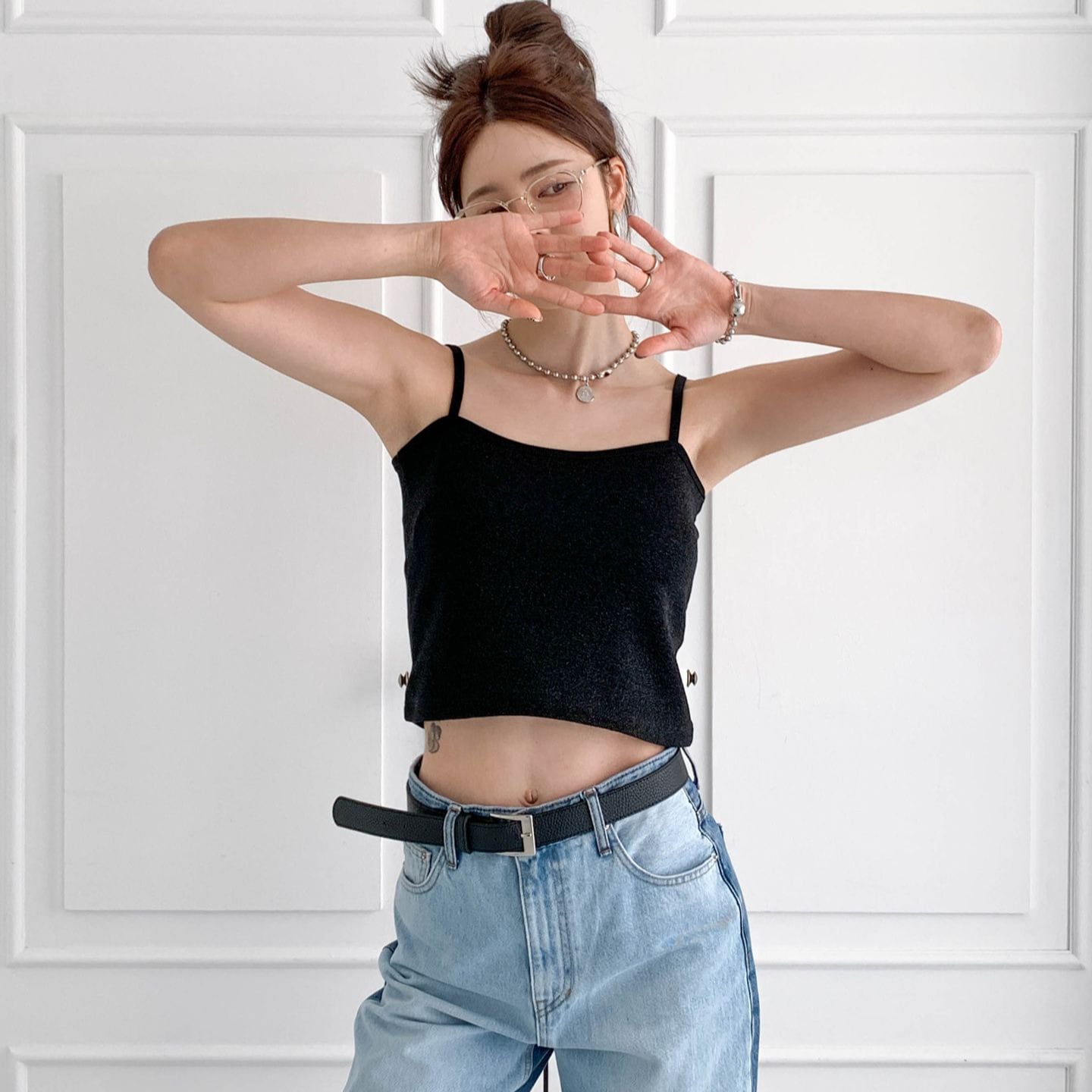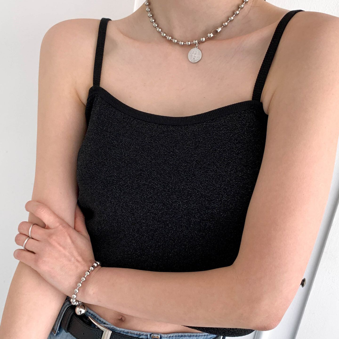 シャロンナシ キャミ キャミソール 黒 ブラック 韓国 重ね着 シンプル