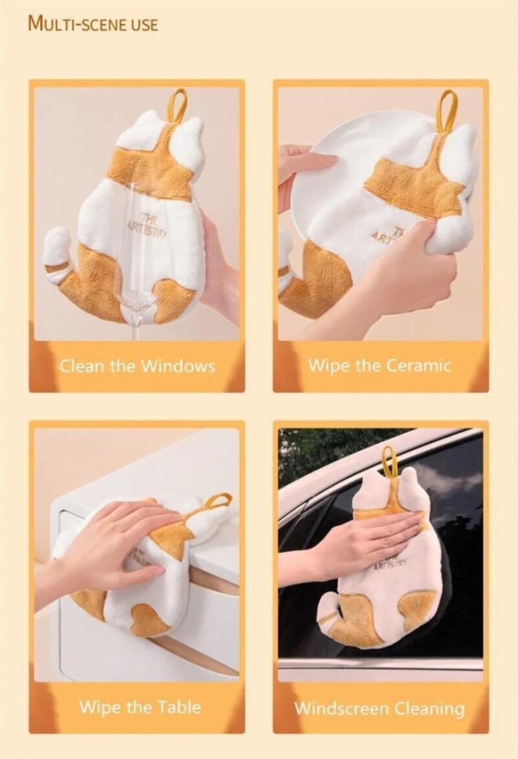 超吸収かわいい猫ハンドタオル家庭用マイクロファイバーキッチンタオル高効率食器掃除用タオルキッチンツール